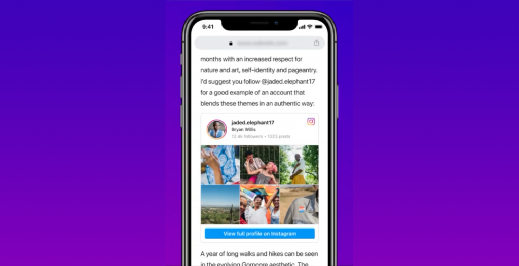 تطرح منصة إنستاجرام الميزة الجديدة Profile Embed التي تتيح للمستخدمين تضمين نسخة مصغرة من الحساب في موقع الويب، وتسمح الميزة الجديدة للمستخدمين بدمج الحسابات ضمن انستقرام في مواقع الويب مثل المدونات والمحافظ.