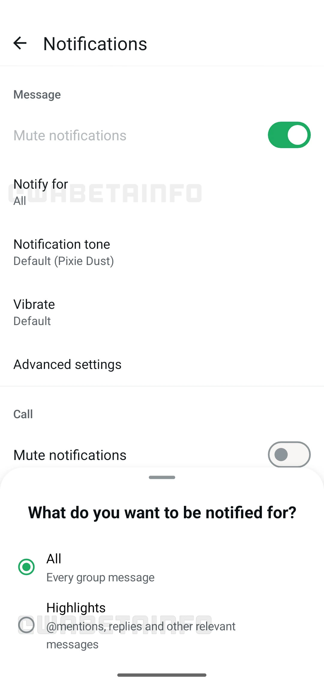 كما ترون من لقطة الشاشة التي نعرضها في الاسفل ، تتيح لك الميزة الجديدة الاختيار بين تلقي الإشعارات لجميع الرسائل الجماعية أو فقط لـ “الإشارات المميزة”، والتي تتضمن @الإشارات والردود و”الرسائل الأخرى ذات الصلة”. من الواضح أن هذا يهدف إلى جعل الدردشات الجماعية الكبيرة والنشطة للغاية أكثر قابلية للإدارة بالنسبة للأشخاص.